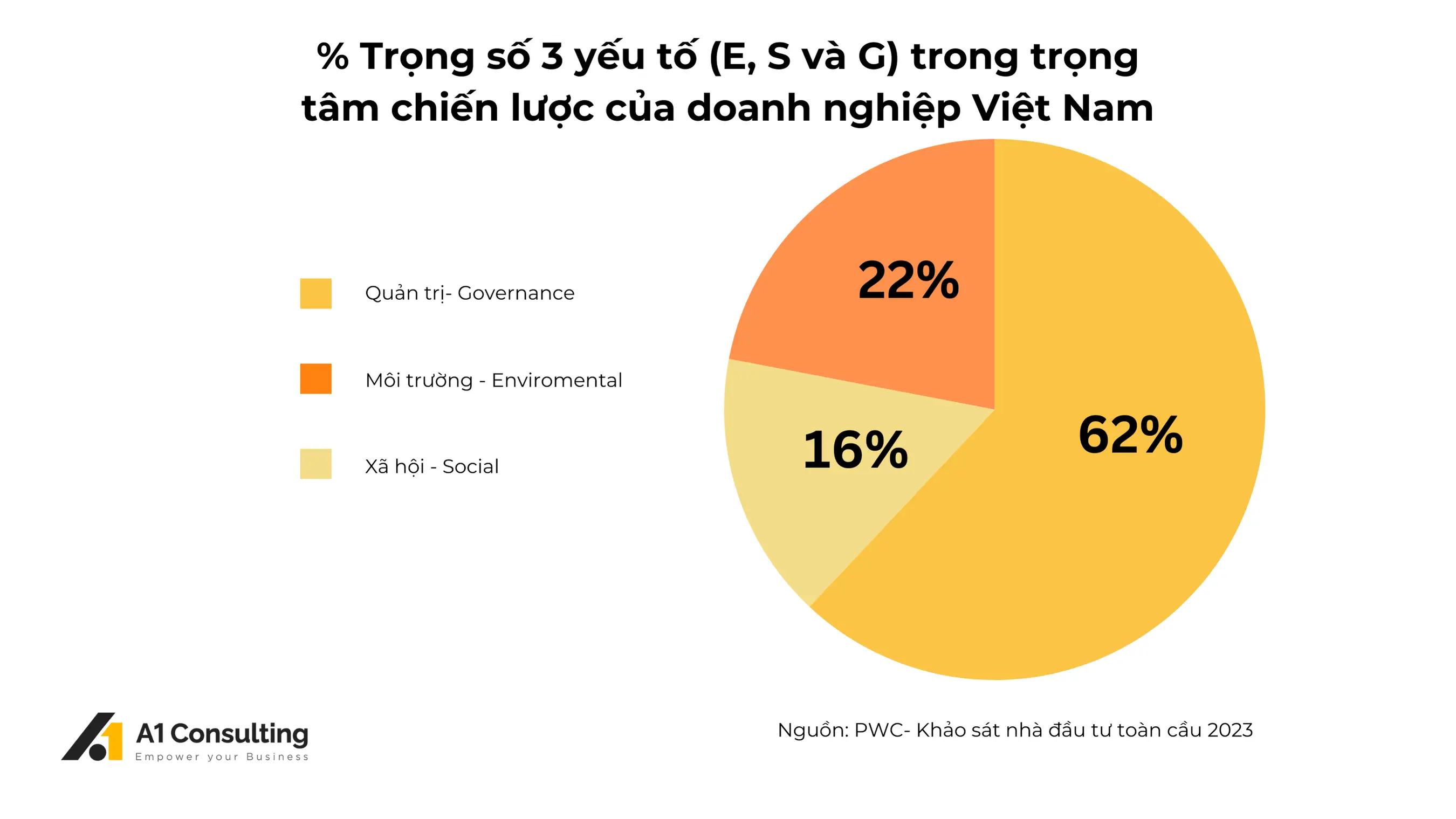 Theo Khảo sát Nhà đầu tư của PwC, 80% doanh nghiệp Việt Nam coi quản trị là mối quan tâm hàng đầu vì họ tin rằng quản trị tốt sẽ cải thiện quá trình ra quyết định trong các vấn đề môi trường và xã hội. Khảo sát này cũng chỉ ra rằng trong ngắn hạn, quản trị có ảnh hưởng lớn đến giá cổ phiếu, trong khi về lâu dài, cả ba yếu tố ESG đều quan trọng để doanh nghiệp vượt trội. Vấn đề quản trị còn nêu bật các mối quan tâm theo từng ngành, bao gồm các rủi ro liên quan đến sức khỏe, an toàn, bảo mật dữ liệu và an ninh, những yếu tố này có thể ảnh hưởng đến giá cổ phiếu trong ngắn hạn.