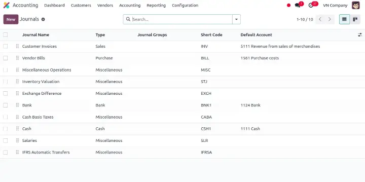 Sổ nhật ký (Journals) trong Odoo là công cụ quan trọng giúp lưu trữ và tổ chức các giao dịch tài chính một cách rõ ràng và chính xác. Chúng giúp ghi lại tất cả các giao dịch như mua bán, chi phí một cách có hệ thống. Bằng cách phân loại các giao dịch vào từng sổ nhật ký cụ thể, doanh nghiệp có thể dễ dàng quản lý công việc kế toán và báo cáo tài chính chính xác. Sổ nhật ký giúp theo dõi và kiểm tra các giao dịch, tuân thủ các chuẩn mực kế toán, và cung cấp thông tin để kiểm tra khi cần thiết. Điều này giúp đảm bảo dữ liệu tài chính chính xác và đơn giản hóa quá trình đối chiếu, giúp dễ dàng quản lý và phân tích hiệu quả tài chính.