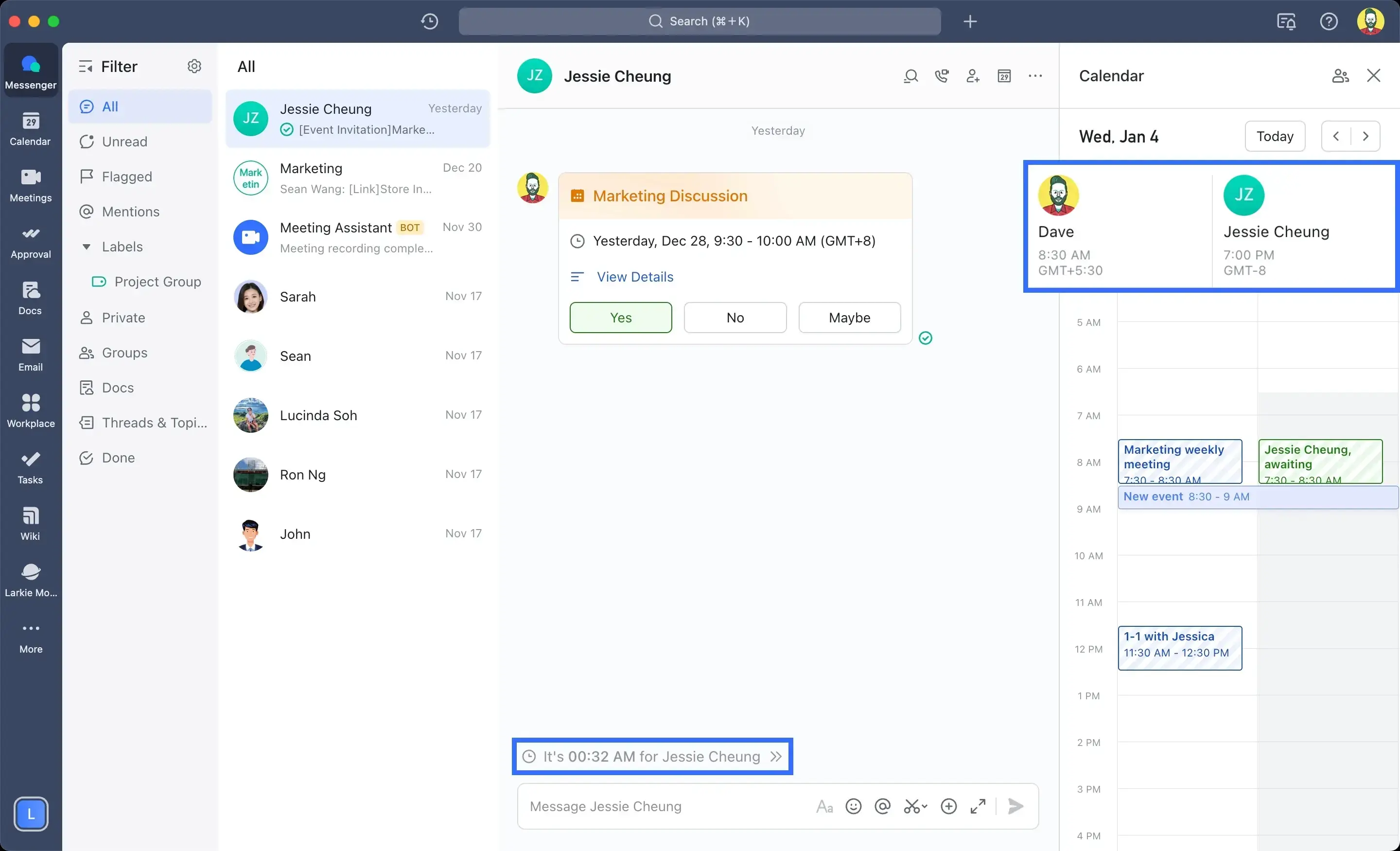 Với đội ngũ trải khắp nhiều quốc gia và múi giờ, việc lên lịch họp tại Xiaomi chưa bao giờ dễ dàng. Khoảng thời gian chồng lấp giữa các khu vực thường rất ngắn, khó để sắp xếp họp đồng bộ.