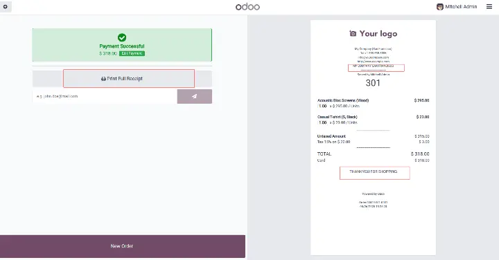 - Nhấn Print Receipt (In hóa đơn) để in hoặc gửi biên nhận qua email.