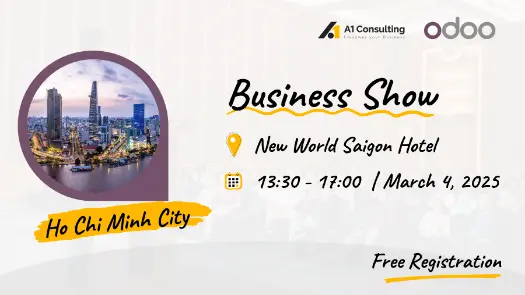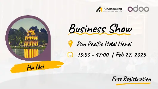 Odoo Business Show Vietnam 2025 sẽ diễn ra tại Hà Nội vào ngày 27/02/2025 và Thành phố Hồ Chí Minh vào ngày 04/03/2025.