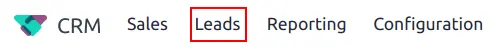 Leads có thể được thêm trực tiếp vào ứng dụng CRM bằng cách tạo bản ghi mới một cách thủ công. Điều hướng đến CRM app ‣ Leads để xem danh sách các lead hiện có.