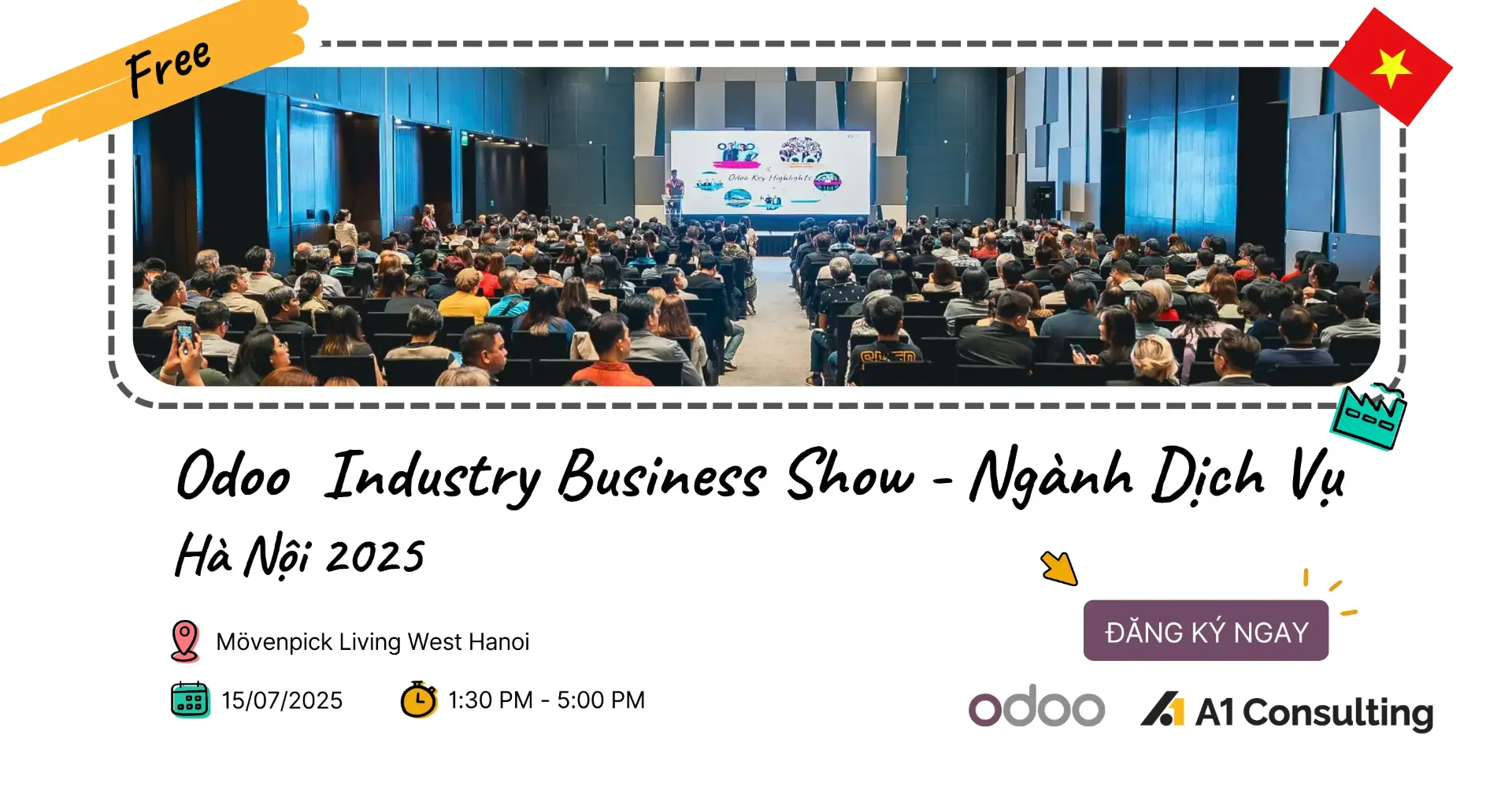 Hà Nội, ngày 23 tháng 6 năm 2025 – A1 Consulting hân hạnh thông báo đồng hành cùng Odoo Industry Business Show Vietnam 2025 – Ngành Dịch Vụ với vai trò đối tác tài trợ chính. Sự kiện sẽ được tổ chức tại hai thành phố lớn: