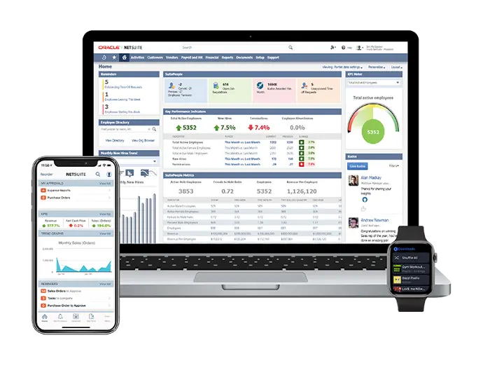 Oracle NetSuite cung cấp các giải pháp quản trị toàn diện như tài chính – kế toán, đơn hàng, tồn kho, CRM, thương mại điện tử, sản xuất, nhân sự và báo cáo theo thời gian thực – tất cả tích hợp trên một nền tảng duy nhất.