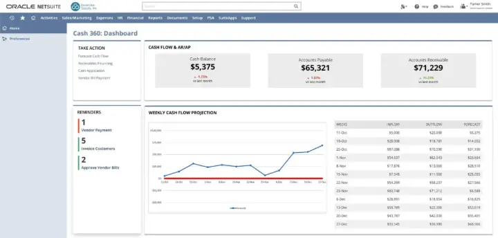 Oracle NetSuite không chỉ giúp quản lý tài chính mà còn đảm bảo doanh nghiệp luôn duy trì dòng tiền ổn định. Hệ thống cung cấp phân tích chi tiết và dự báo chính xác, giúp doanh nghiệp lập kế hoạch và đưa ra quyết định đầu tư hiệu quả.