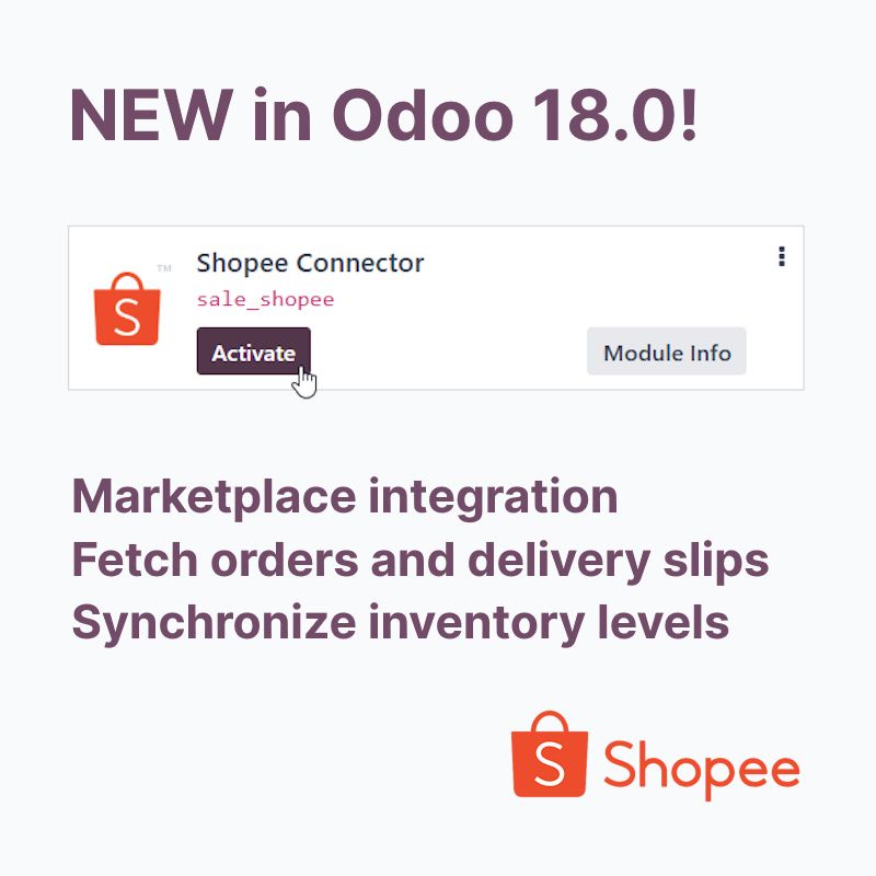 Shopee Connector là giải pháp mới nhất của Odoo, kết nối hệ sinh thái thương mại điện tử rộng lớn của Shopee với nền tảng ERP toàn diện của Odoo. Nhờ tích hợp API, đơn hàng được đồng bộ tức thì, tồn kho cập nhật theo thời gian thực, và việc quản lý bán hàng đa kênh chưa bao giờ dễ dàng đến thế. Mọi sai sót do thao tác thủ công được loại bỏ hoàn toàn, giúp kiểm soát chặt chẽ từng giao dịch trên Shopee. Doanh nghiệp nào sớm cập nhật và đổi mới sẽ chiếm ưu thế – và Shopee Connector của Odoo chính là công cụ giúp bạn tiến gần hơn đến thành công.
